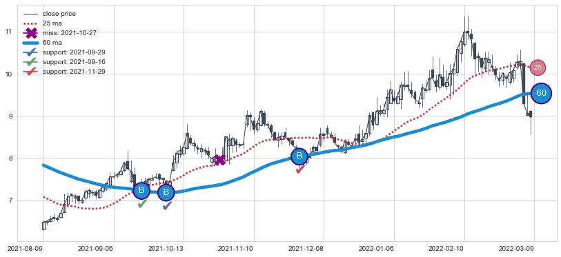 上涨趋势2021-08-09-2022-03-09,均线60确认关键支撑3处