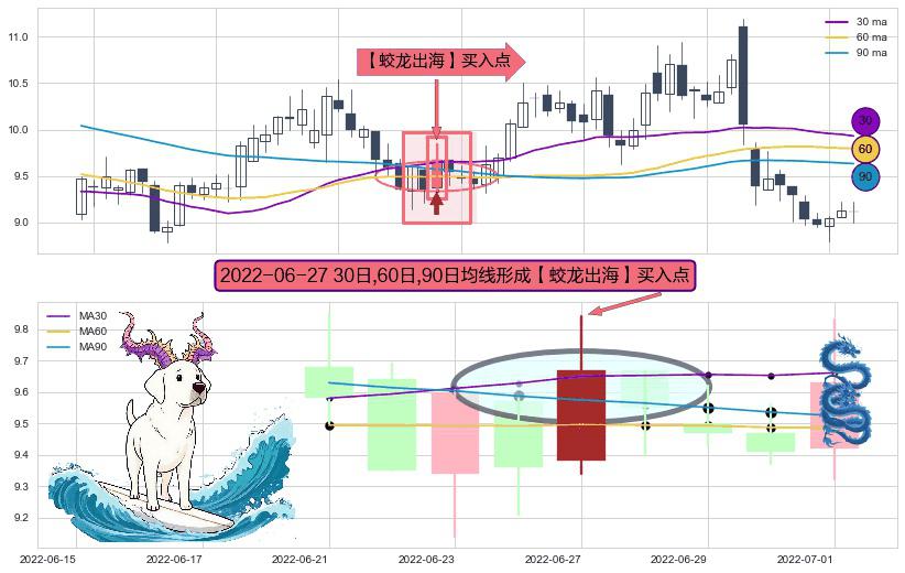 ⚀ 2022-06-27日显现 30日-60日-90日均线 【蛟龙出海】买入点 看多信号,后市看涨,买入
