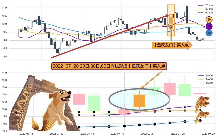 ⚀ 2022-07-20日显现 20日-30日-60日均线 【鱼跃龙门】买入点 看多信号,后市看涨,买入