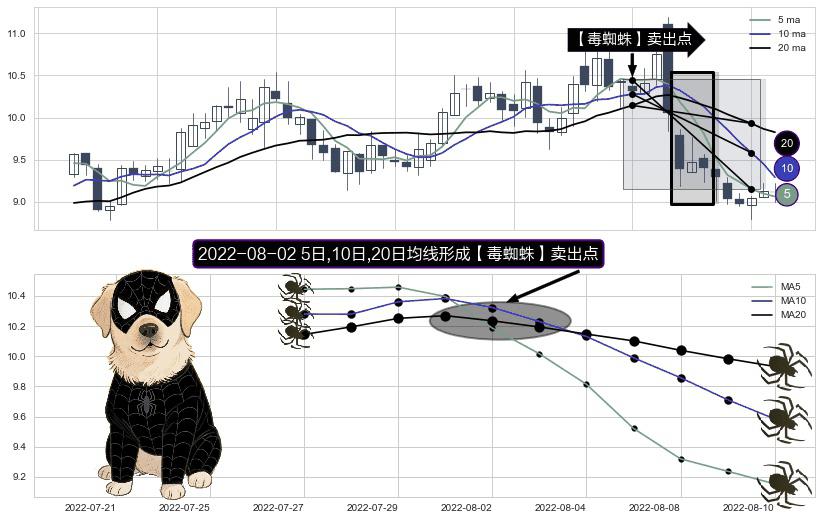 ⚀ 2022-08-02日显现 5日-10日-20日均线 【毒蜘蛛】卖出点 看空信号,后市看跌,卖出