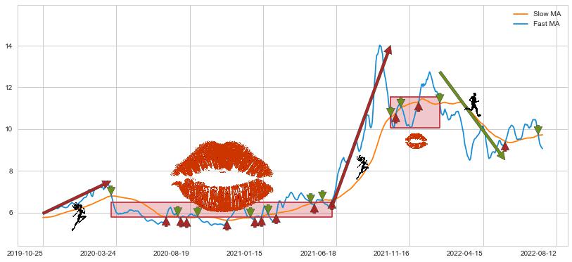 2022-01-13至2022-06-01 慢线与快线呈空头排列, 慢线与快线接触少,无缠绕