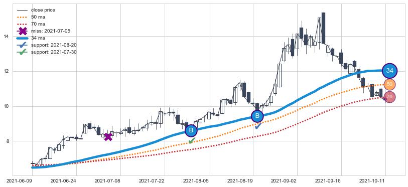 ➢ 发现最优均线组合: 34 , 50 , 70