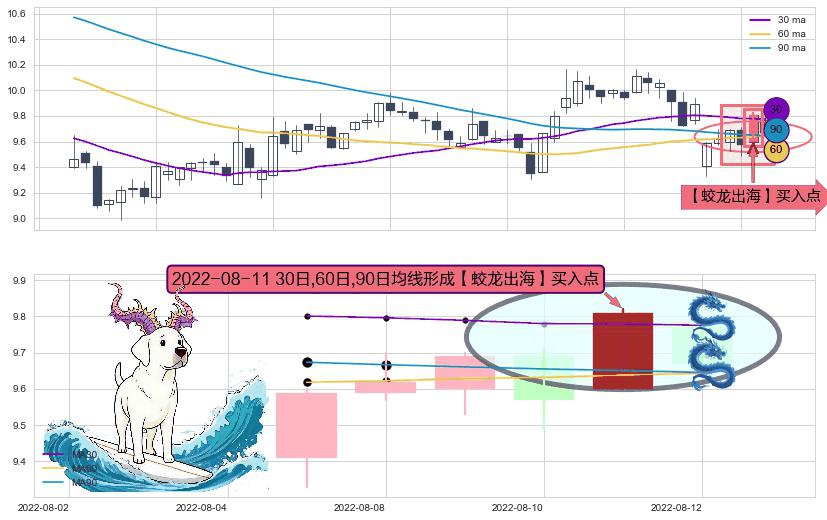 ⚀ 2022-08-11日显现 30日-60日-90日均线 【蛟龙出海】买入点 看多信号,后市看涨,买入