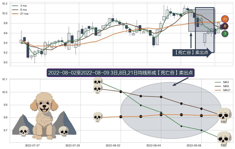⚀ 2022-08-03-日至2022-08-09-日显现 3日-8日-21日均线 【死亡谷】卖出点 看空信号,后市看跌,卖出