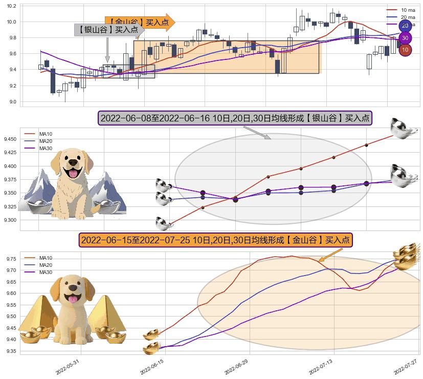 ⚃ 2022-06-16-日至2022-07-25-日显现 10日-20日-30日均线 【金山谷】买入点 其再次确认了买入信号,可靠性更强,买入