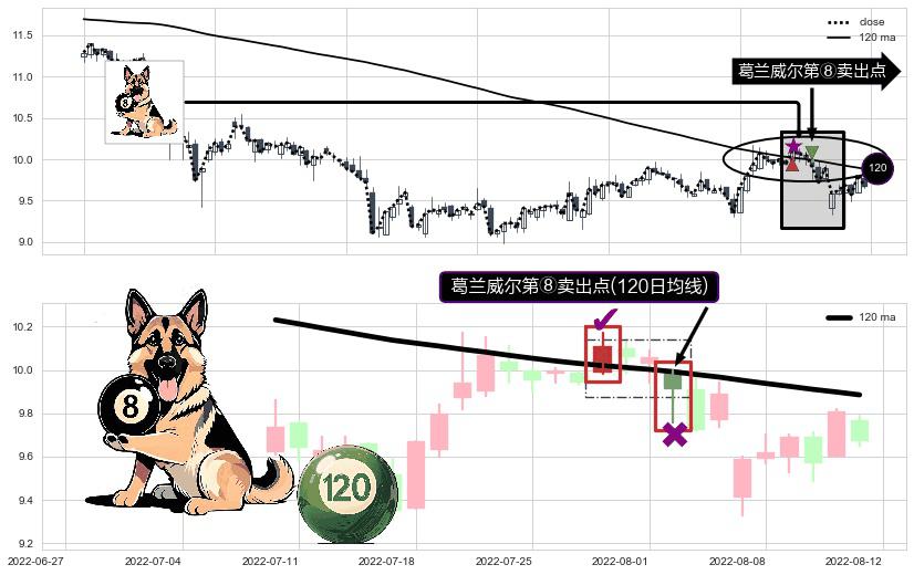 ⚀ 2022-08-02-日显现 葛兰威尔均线 120日均线 第⑧卖出点 下降趋势的中继信号,后市看跌,卖出信号
