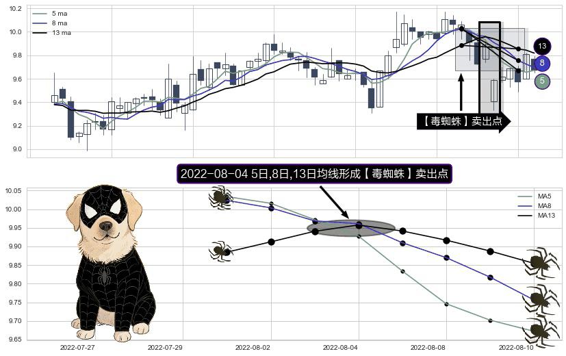 ⚀ 2022-08-04日显现 5日-8日-13日均线 【毒蜘蛛】卖出点 看空信号,后市看跌,卖出