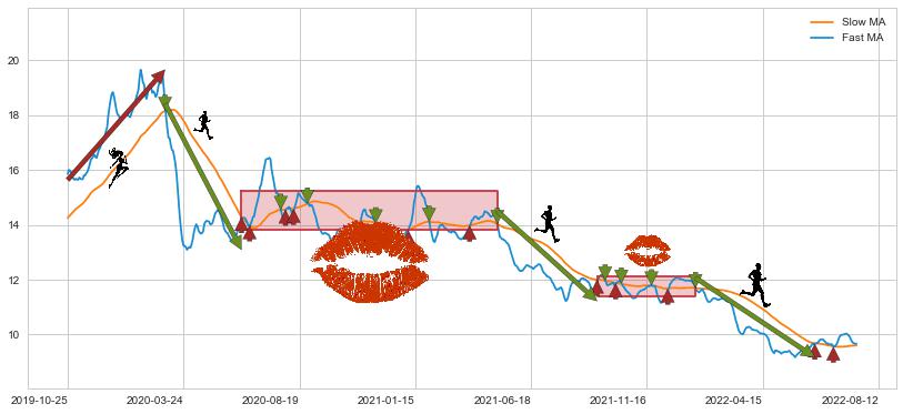 2022-01-14至2022-06-23 慢线与快线呈空头排列, 慢线与快线接触少,无缠绕