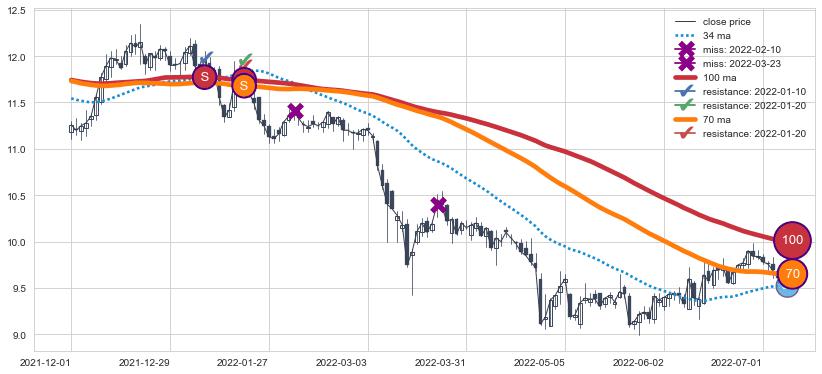 ⚂ 2022-07-28-日均线向上突破,2022-08-02-日重新下穿均线破位,均线阻力再次生效