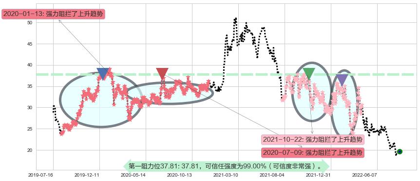 ♘ 阻力价格位37.81,可信任强度99.00%,距离最后交易2022-08-12形成的收盘价格19.69相差 +92.02%