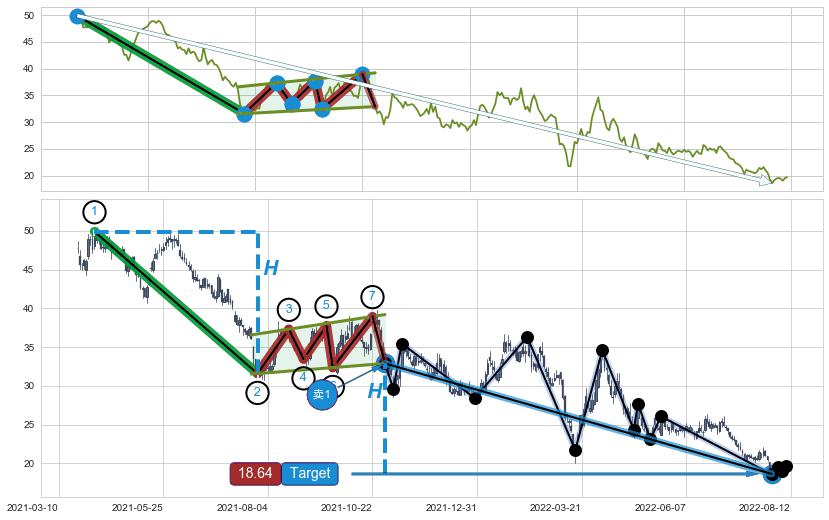 ➣ 最小中继整理跌幅→𝐇: 18.32 (𝐇旗杆的长度:旗杆起点→顶点)