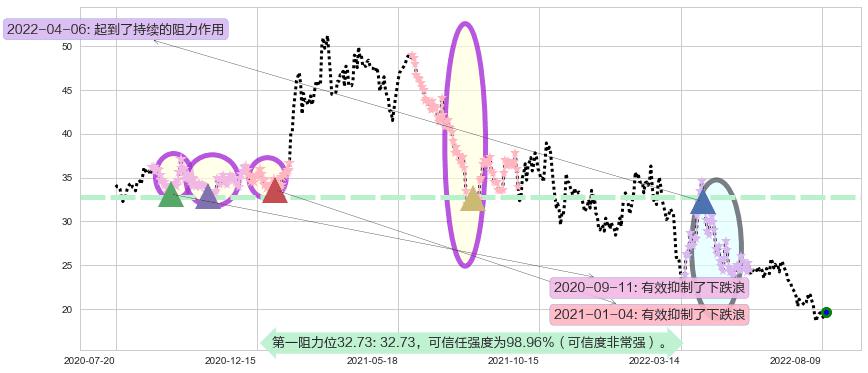 ♘ 阻力价格位32.73,可信任强度98.96%,距离最后交易2022-08-12形成的收盘价格19.69相差 +66.23%