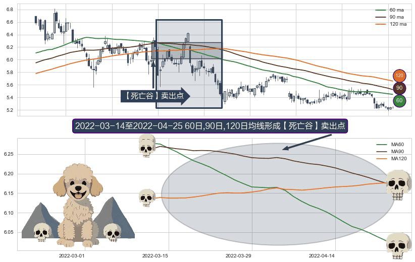 ⚀ 2022-03-15-日至2022-04-25-日显现 60日-90日-120日均线 【死亡谷】卖出点 看空信号,后市看跌,卖出
