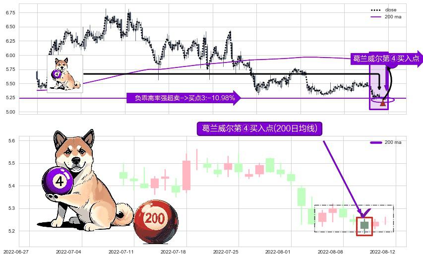 ⚀ 2022-08-10-日显现 葛兰威尔均线 200日均线 第④买入点 下降趋势均值回复的短线反弹信号,后市看涨,买进信号