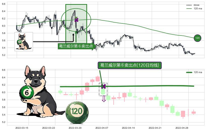 ⚀ 2022-04-06-日显现 葛兰威尔均线 120日均线 第⑥卖出点 走势反转见顶信号,后市看跌,卖出信号