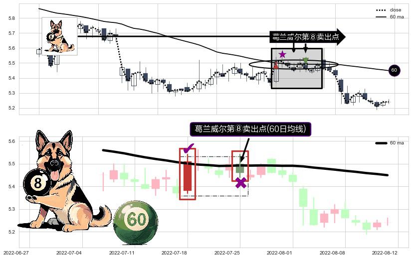 ⚀ 2022-07-25-日显现 葛兰威尔均线 60日均线 第⑧卖出点 下降趋势的中继信号,后市看跌,卖出信号