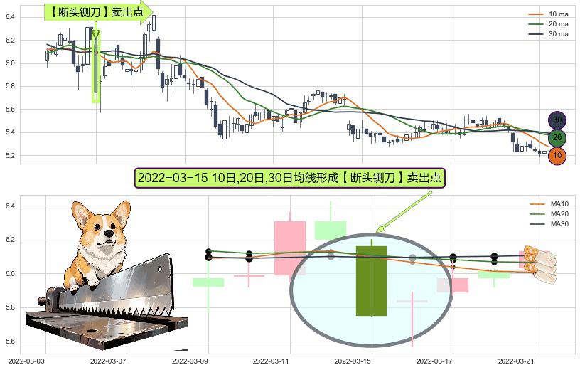 ⚀ 2022-03-15日显现 10日-20日-30日均线 【断头铡刀】卖出点 看空信号,后市看跌,卖出