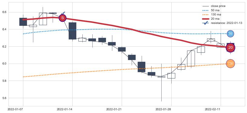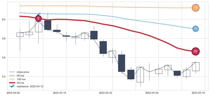 ⚂ 2022-07-18-日均线向上突破,2022-07-25-日重新下穿均线破位,均线阻力再次生效
