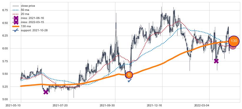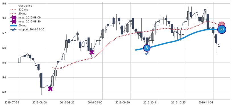 ⚃ 在破位点附近ma走势明显平稳迹象,稍后的走势中ma下垂迹象也出现,信号【可信度中等偏上】
