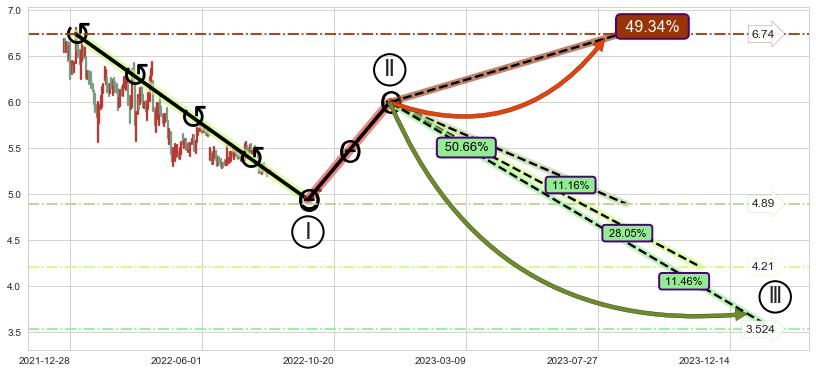 ➣ AI预测: 假定反转启动后, 第❸目标位置(2023-04-12, 6.74)