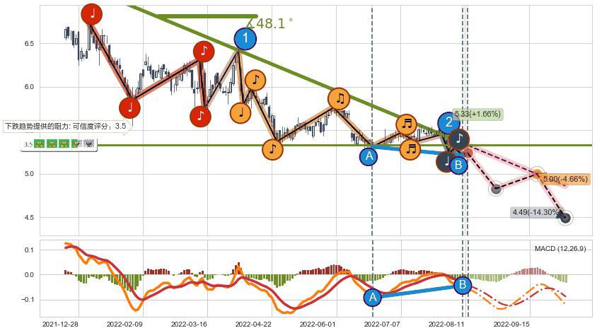 ➣ 预测:2022-09-20,【试探阻力】稳定目前下跌趋势的前提下,预测价格:5.00