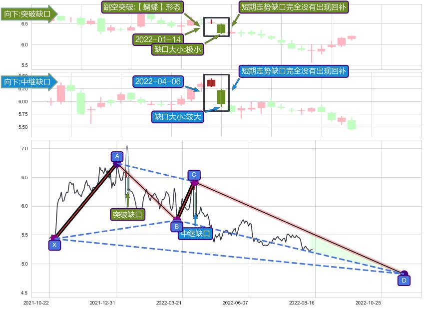 ➢ 【蝴蝶】形态 🔜 中继缺口 🔜 突破缺口 综合量化分数:45.06 【偏空】