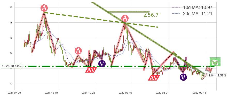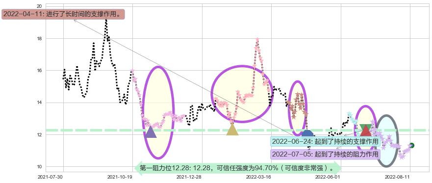 ♘ 阻力价格位12.28,可信任强度94.70%,距离最后交易2022-08-12形成的收盘价格11.33相差 +8.41%