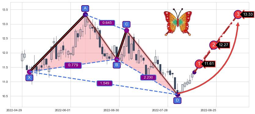 ➣ 已完成【蝴蝶】形态起点X: 2022-05-09, 终点D: 2022-08-03, 共62交易日