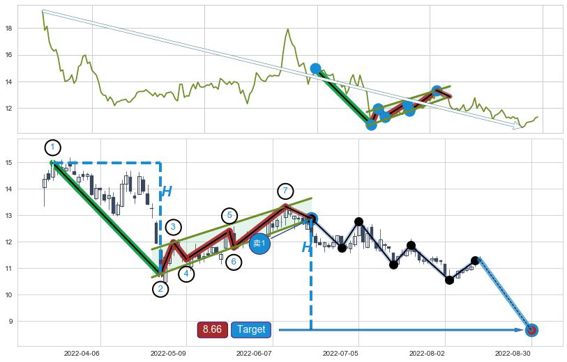 ➢ AI预测: 假定反转如期而至,第❸价格目标位置(2022-09-07, 13.33)