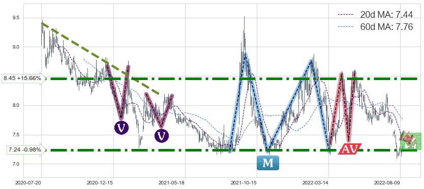 ♞ 20日均线:7.44,60日均线:7.76→ 快线<慢线