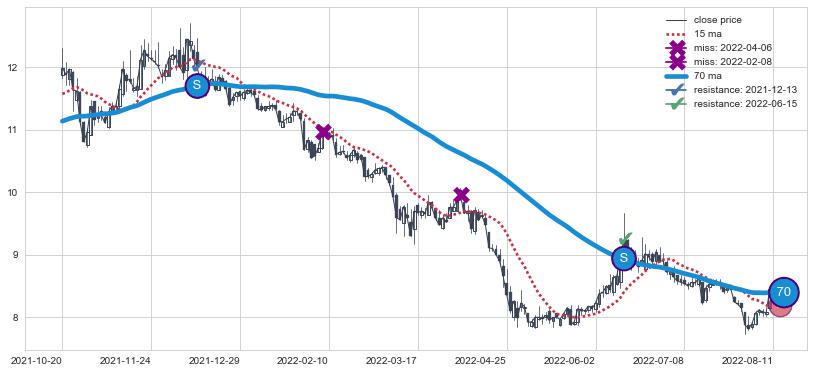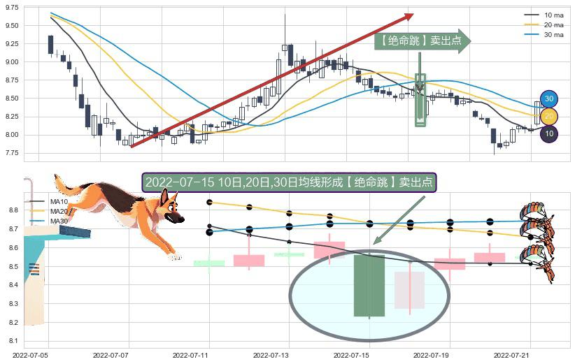 ⚀ 2022-07-15日显现 10日-20日-30日均线 【绝命跳】卖出点 看空信号,后市看跌,卖出