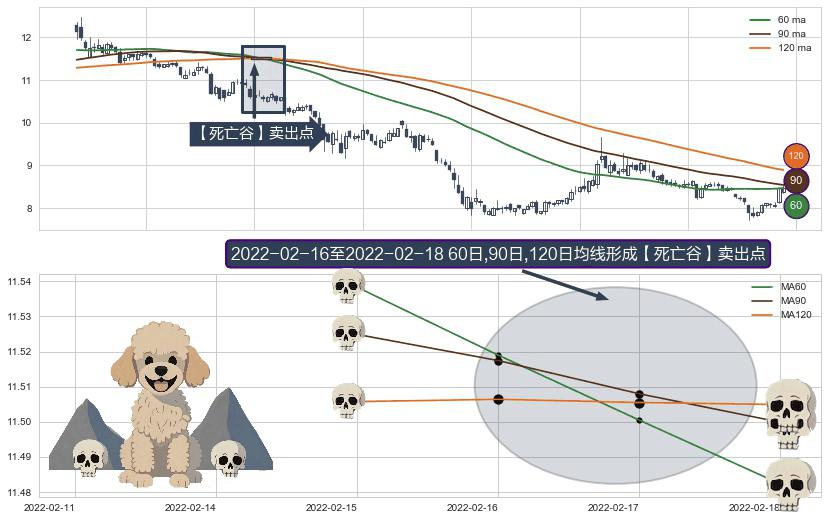 ⚀ 2022-02-17-日至2022-02-18-日显现 60日-90日-120日均线 【死亡谷】卖出点 看空信号,后市看跌,卖出