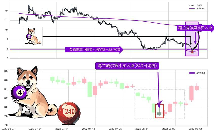⚀ 2022-08-03-日显现 葛兰威尔均线 240日均线 第④买入点 下降趋势均值回复的短线反弹信号,后市看涨,买进信号