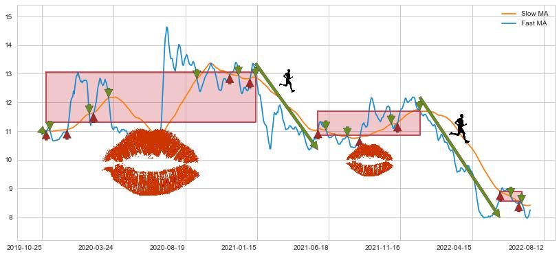 2021-12-23至2022-06-15 慢线与快线呈空头排列, 慢线与快线接触少,无缠绕