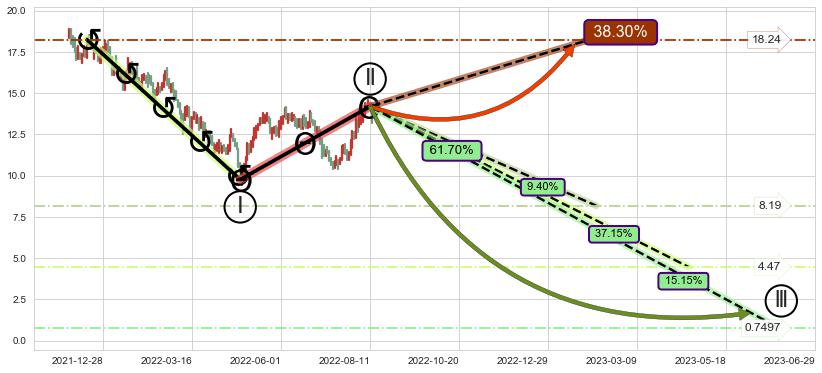 ➣ AI预测: 假定反转启动后, 第❶目标位置(2023-03-20, 14.81)