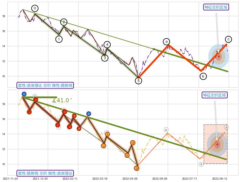♘ 支撑价格位11.24,可信任强度57.79%,距离最后交易2022-08-12形成的收盘价格13.29相差 -15.44%