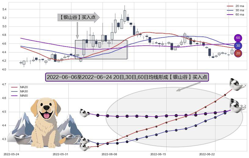 ⚀ 2022-06-07-日至2022-06-24-日显现 20日-30日-60日均线 【银山谷】买入点 看多信号,后市看涨,买入