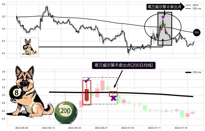 ⚀ 2022-06-28-日显现 葛兰威尔均线 200日均线 第⑧卖出点 下降趋势的中继信号,后市看跌,卖出信号