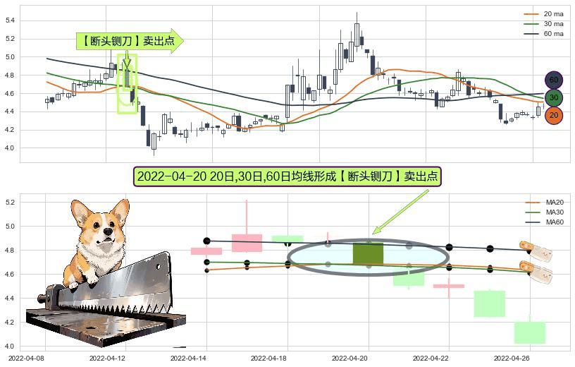 ⚀ 2022-04-20日显现 20日-30日-60日均线 【断头铡刀】卖出点 看空信号,后市看跌,卖出