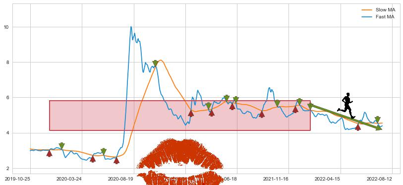 2022-01-14至2022-08-12 慢线与快线呈空头排列, 慢线与快线接触少,无缠绕