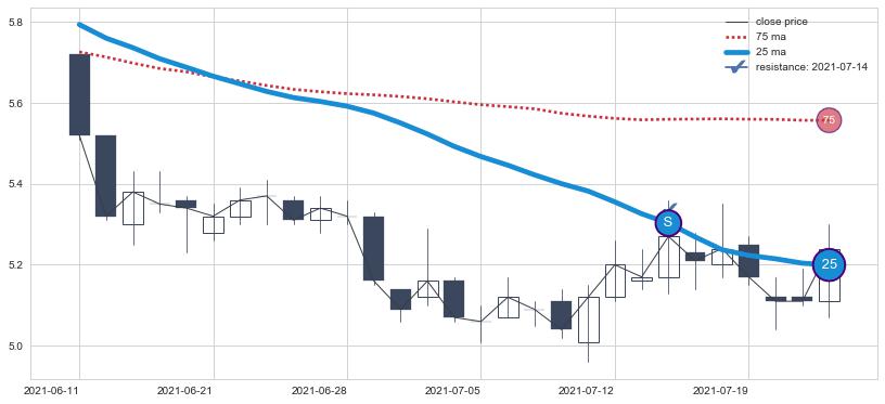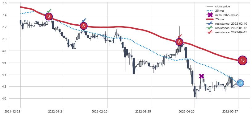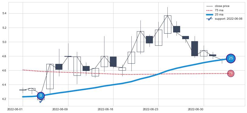 ⚂ 2022-06-21-日均线向上突破,2022-06-28-日重新下穿均线破位,均线阻力再次生效