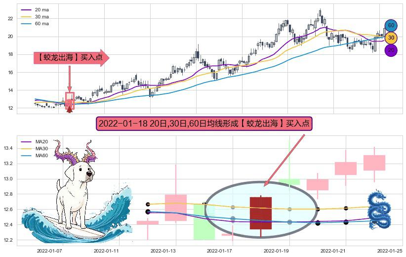 ⚀ 2022-01-18日显现 20日-30日-60日均线 【蛟龙出海】买入点 看多信号,后市看涨,买入