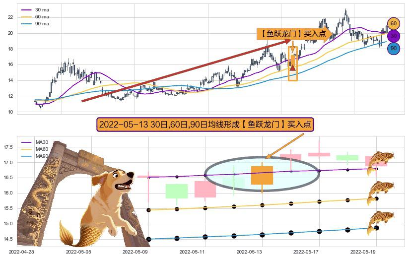⚀ 2022-05-13日显现 30日-60日-90日均线 【鱼跃龙门】买入点 看多信号,后市看涨,买入