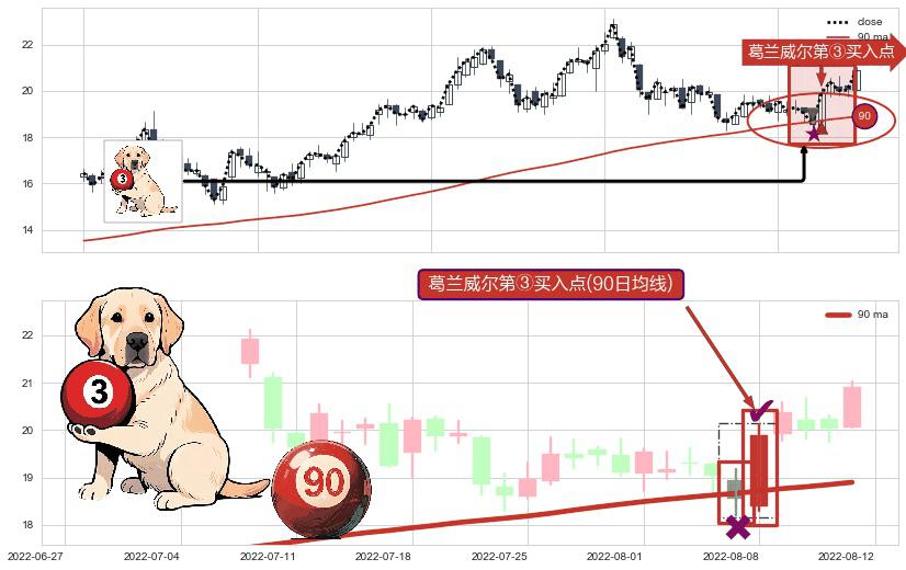 ⚀ 2022-08-08-日显现 葛兰威尔均线 90日均线 第③买入点 上升趋势的中继信号,后市看涨,买进信号