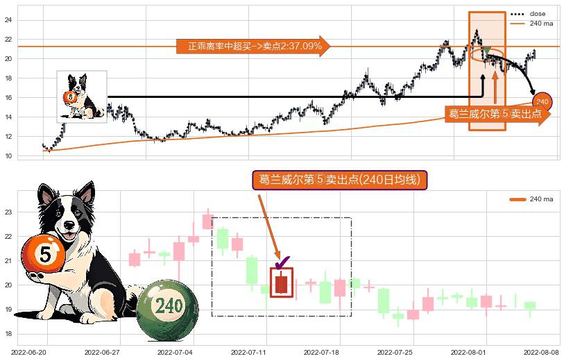 ⚀ 2022-07-12-日显现 葛兰威尔均线 240日均线 第⑤卖出点 上升趋势均值回复的短线回落信号,后市看跌,卖出信号