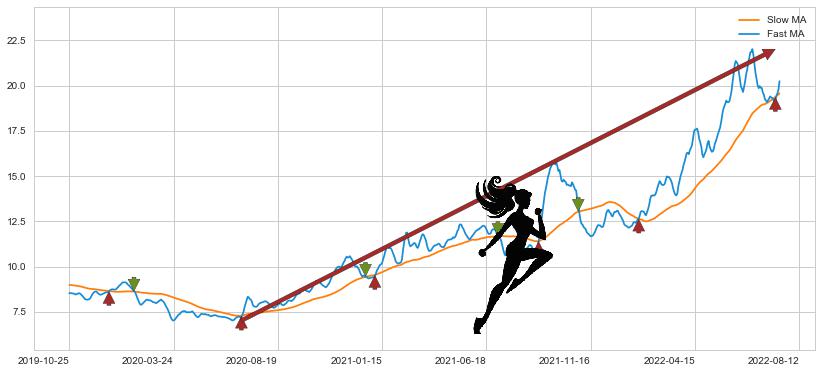 ⚅ 买点向上突破均线后,价格不断向上抬高,不断远离均线,气势如虹,均线强斥力助涨