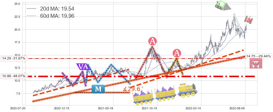 从2020-08-12至2022-08-04,共包含481个交易日,阶段股价上涨111.27%,阶段股价变动位移路程比: 1 : 9,上涨趋势角度: 29.6