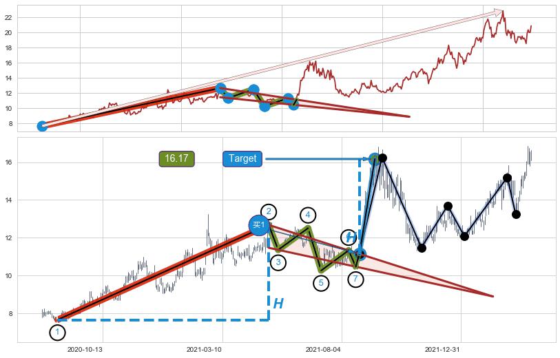 ➢ 最小中继整理涨幅→𝐇: 5.02 (𝐇楔型旗杆的长度:楔型起点→顶点)