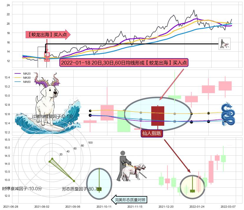 | 2 🅚:【烘云托月】买入点 ➕ ☯️:缠论中枢点上升缠中枢B突破后距离1卖距离较远,随后猜想后续持续拉升(趋势跟踪) ☞ 看多信号 ⇥ 【均线】交织【图形】⇥ 综合量化分数: 58 | > |