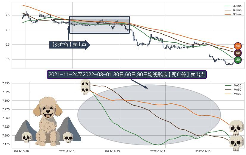 形态多维评估: ⚀ 2021-11-25-日至2022-03-01-日显现 30日-60日-90日均线 【死亡谷】卖出点 看空信号,后市看跌,卖出